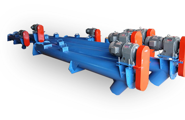 在頭節內裝有支推軸承承受軸向力,在中間節和尾節內裝有用軸承支承螺旋軸,此外,在尾節內還裝有可軸向移動的徑向軸承以補 償螺旋軸長度的誤差和適應溫度的變化。螺旋面的形式有實體螺旋(S制法)和帶式螺旋(D制法)兩種。各螺旋軸之間采用法蘭式聯接, 保證了聯接軸的互換性,便于維修。